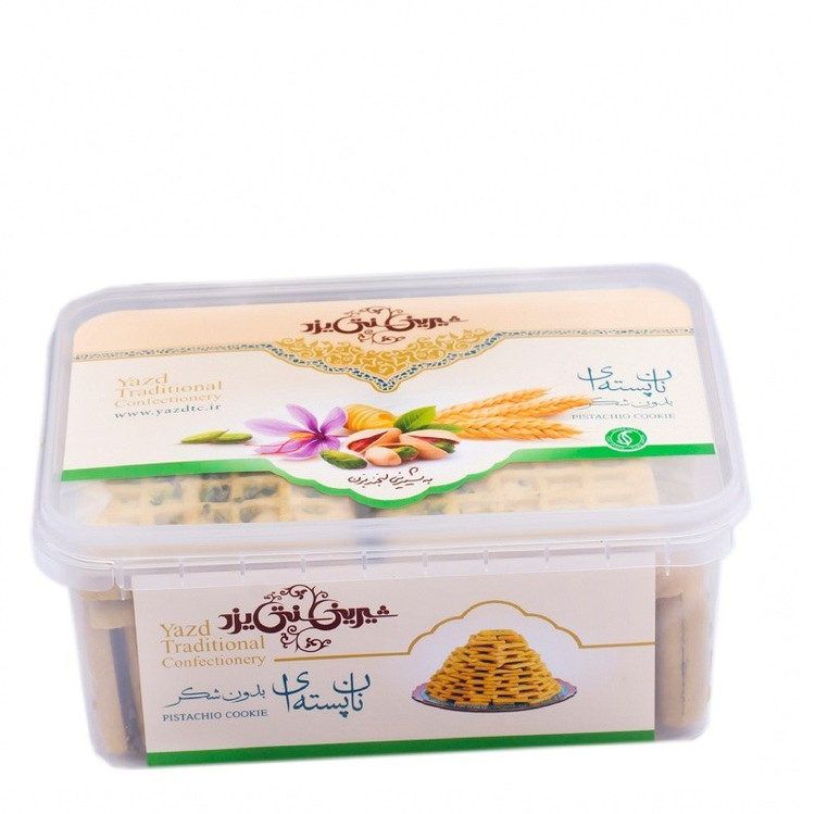 شیرینی نان پسته ای بدون شکر جعبه پلاستیکی سنتی یزد 480 گرمی