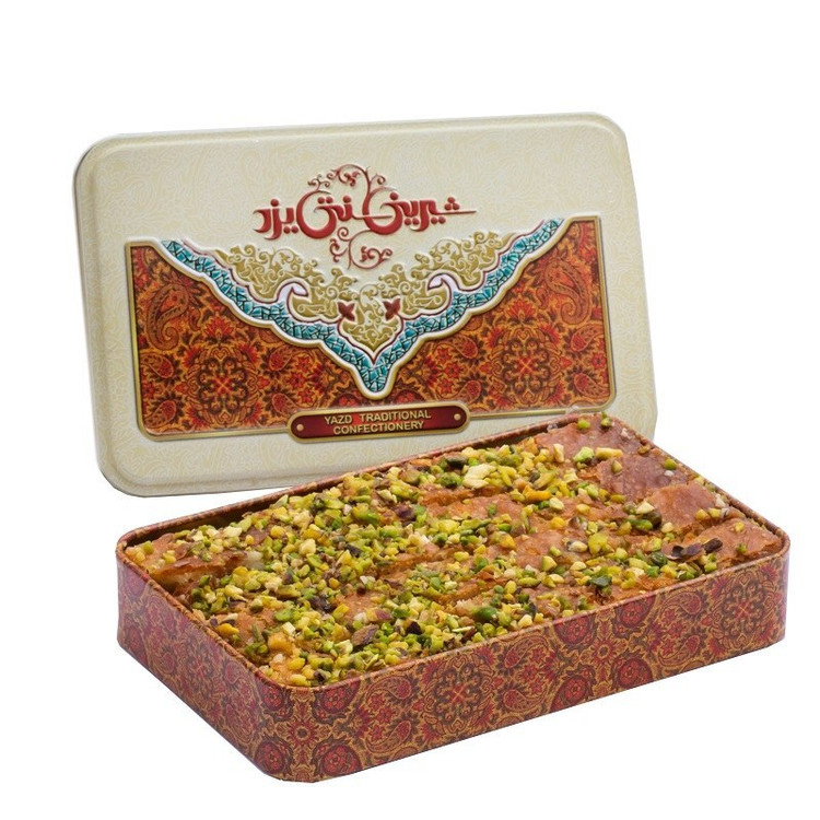باقلوا 5 سیخ طرح جعبه فلزی سنتی یزد 500 گرمی