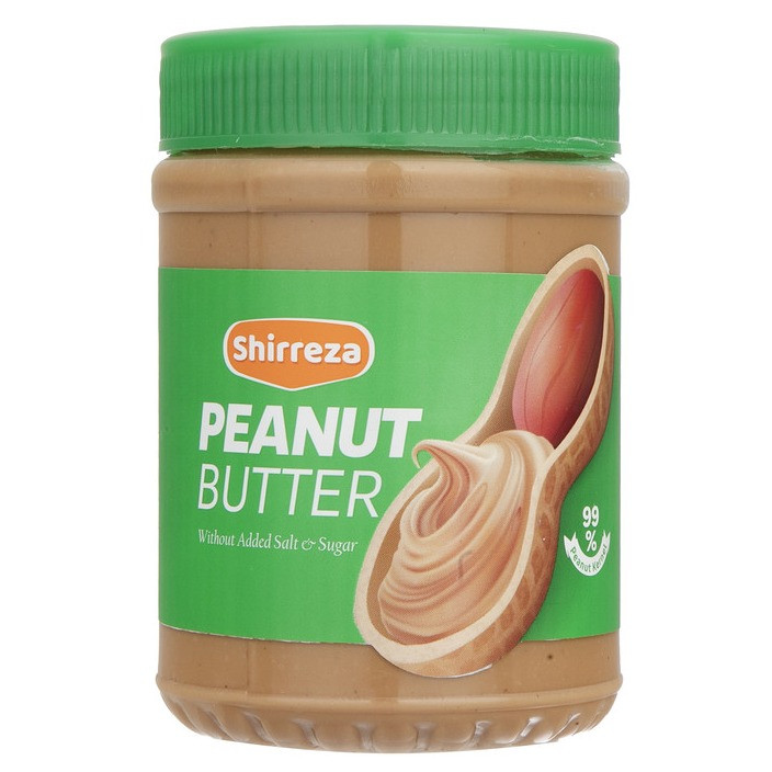 کره بادام زمینی بدون نمک و شکر افزوده شیررضا 450 گرمی