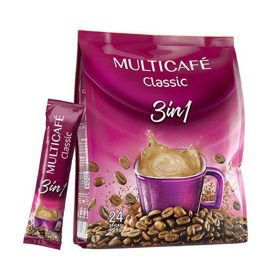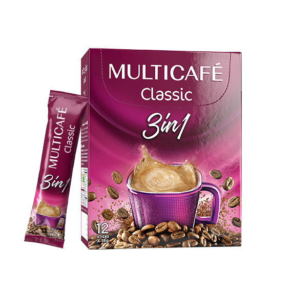 وقتی صحبت از مولتی کافه ۳ در ۱ میشه ، هیچ چیز بهتر از نوشیدن یک فنجان قهوه با دوستانتان نیست. ترکیبی از قهوهٔ کلاسیک، شکر و پودر خامهای کنندهٔ غیرلبنی با بافتی بسیار لطیف و شیرینی به اندازه که این نوشیدنی را دلچسب کرده است.